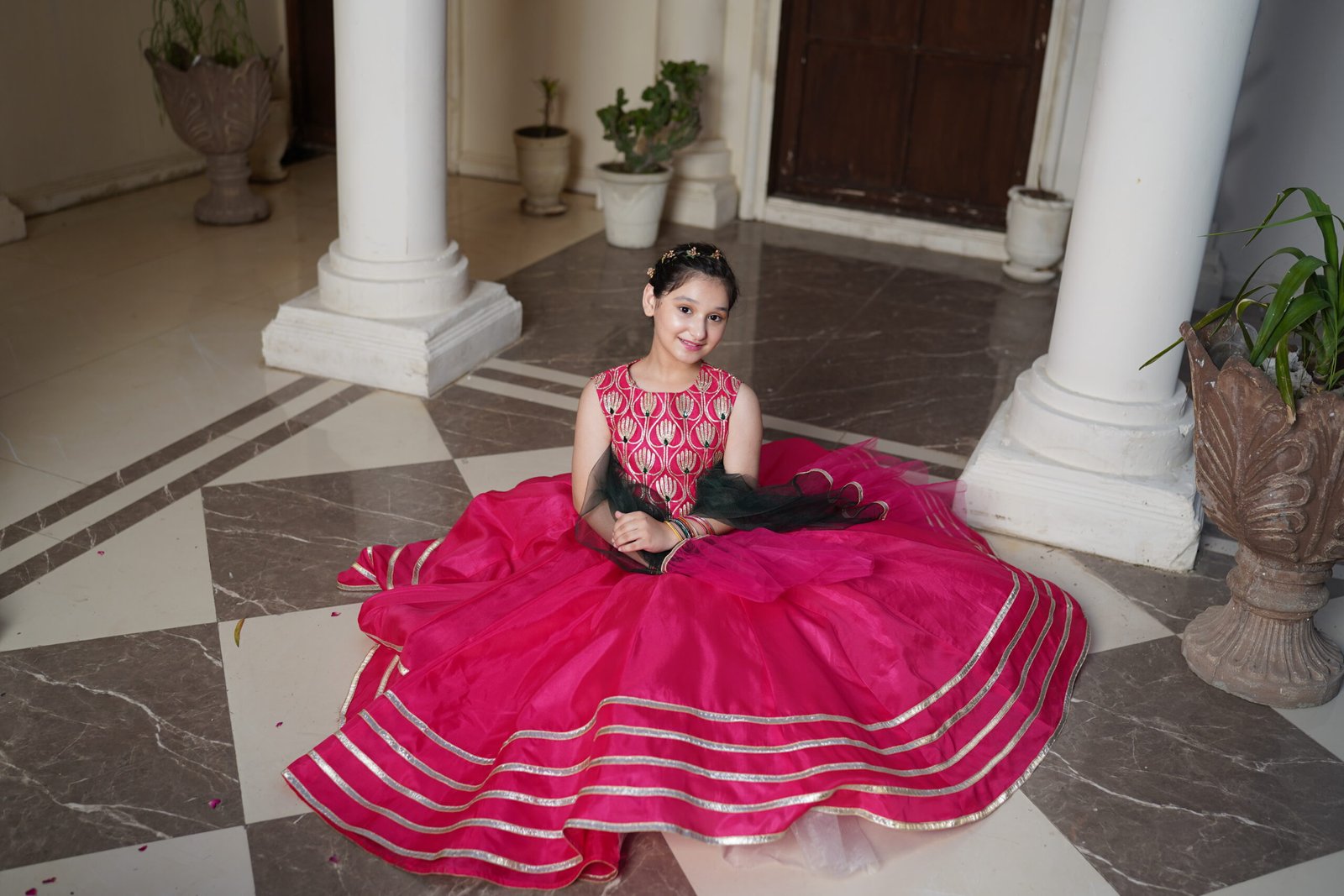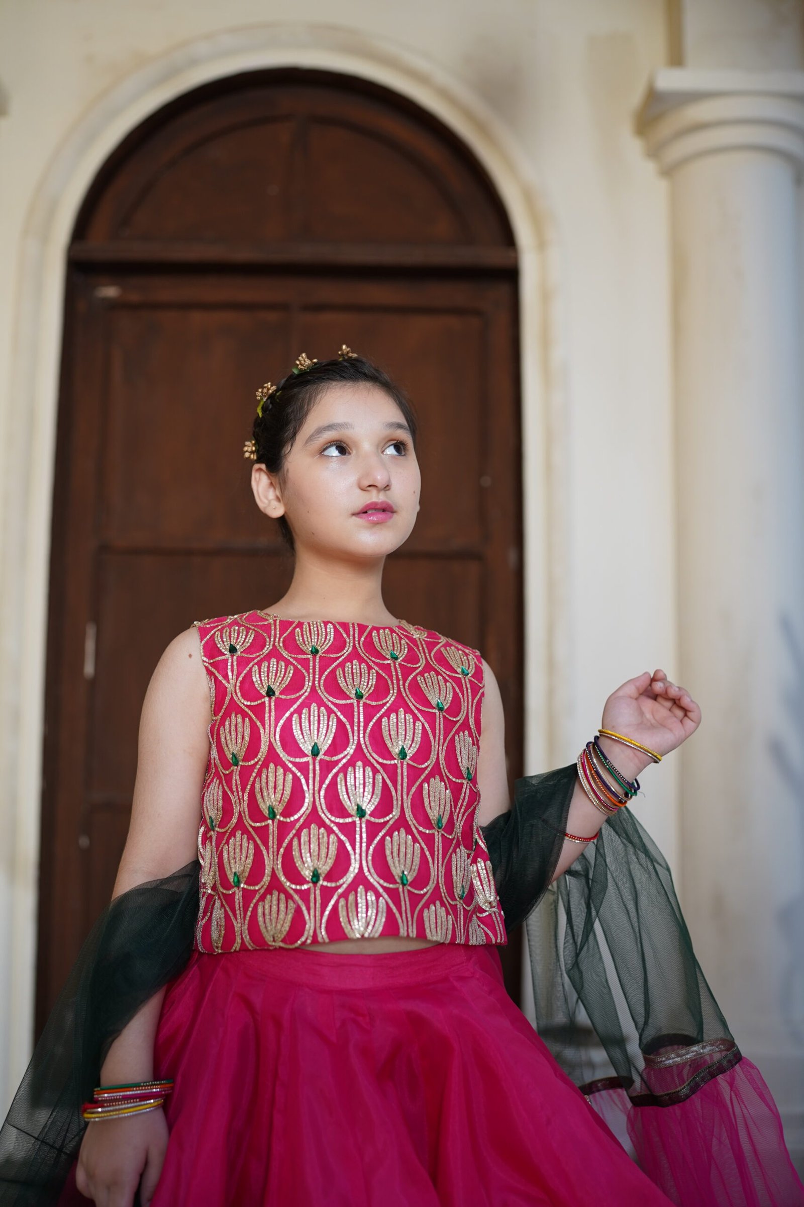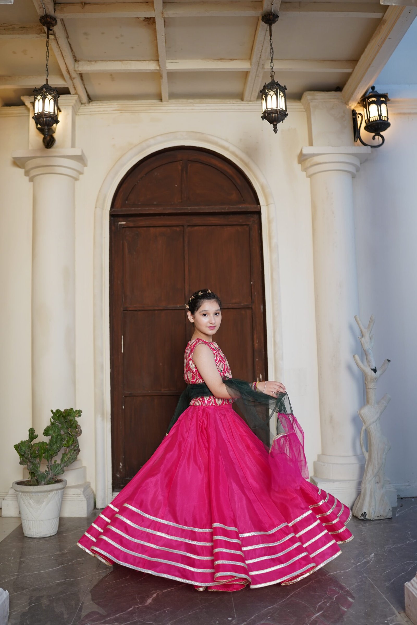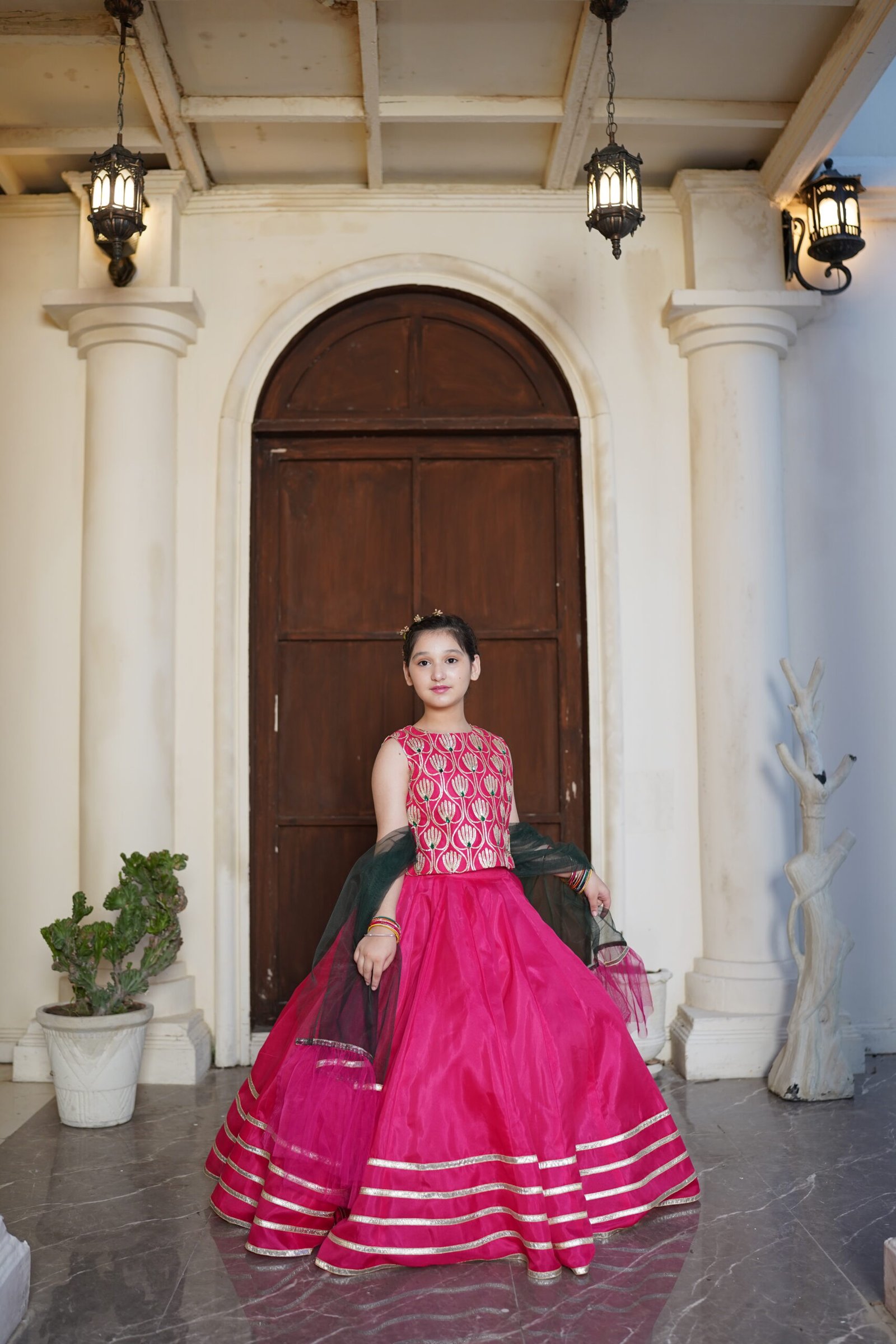 This vibrant, festive, and youthful pink outfit is the perfect pick for this wedding season. Looks stunning bright in our gotta work lehnga choli embellished with stones